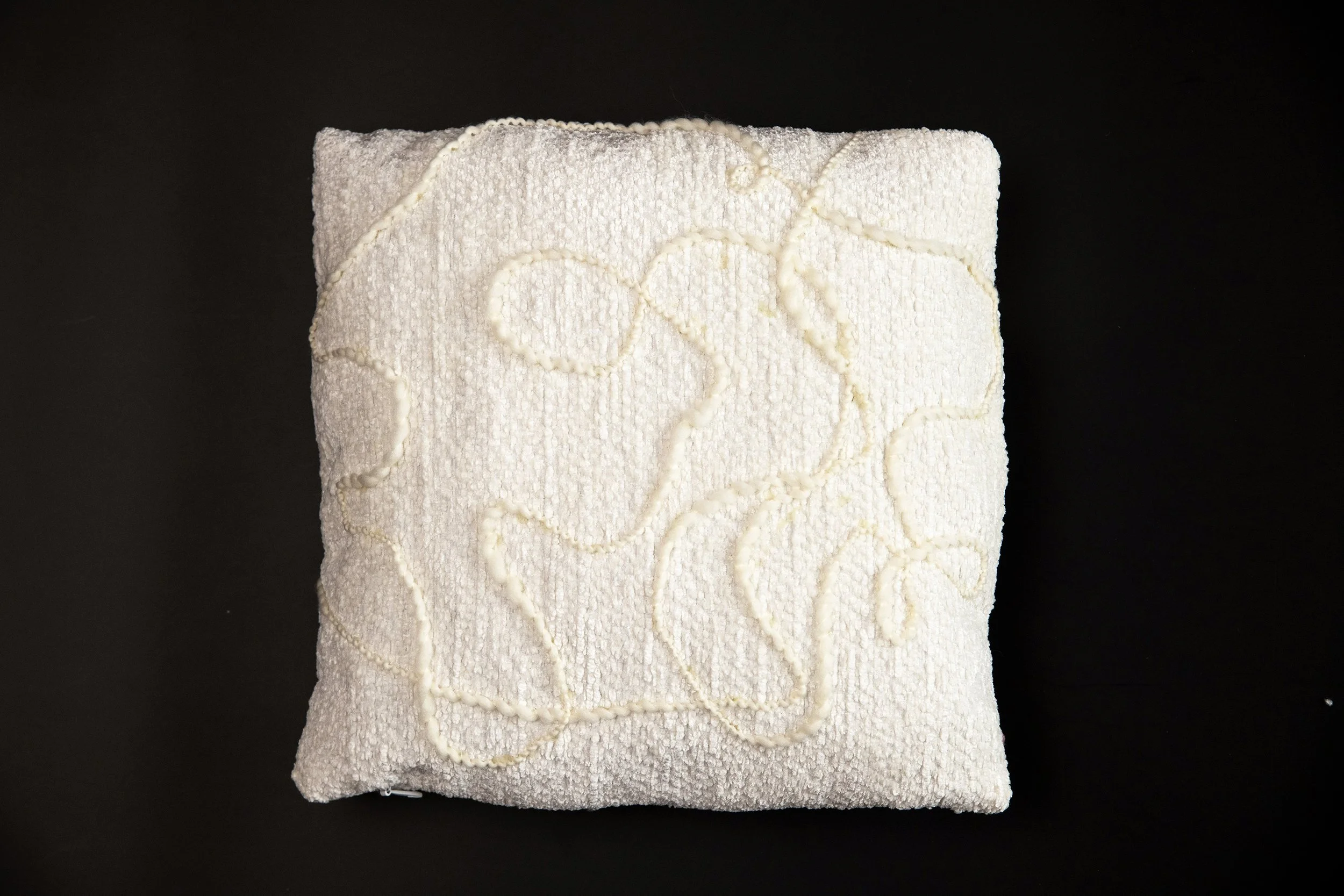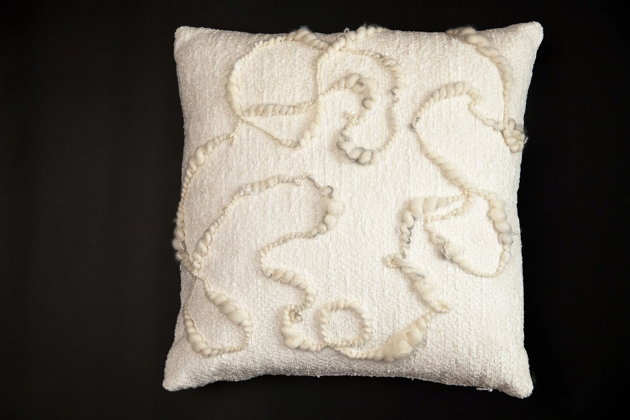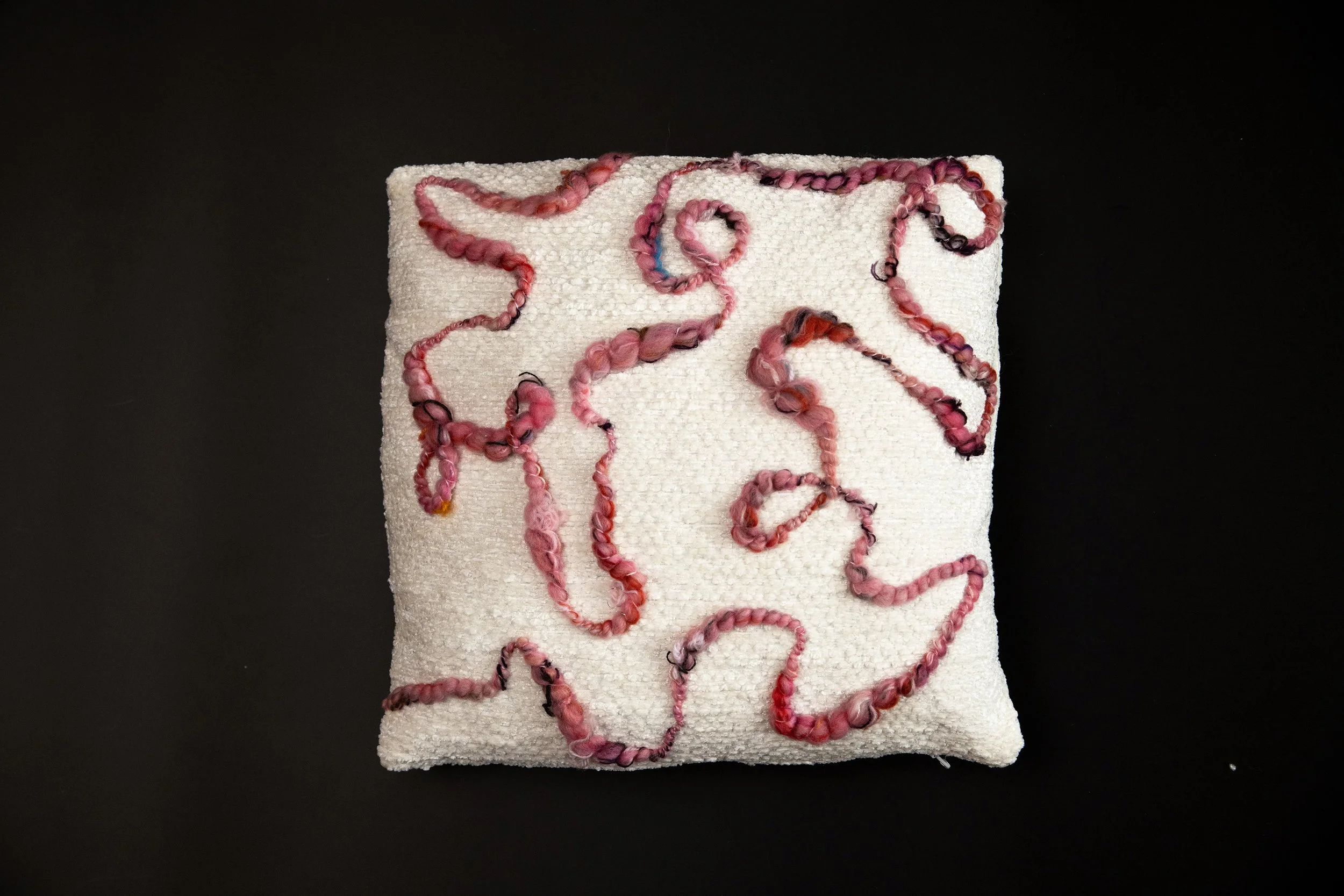 The back of the pillow, covered in white yarn, symbolizes healing. It represents the journey of acknowledging the trauma, integrating it into our lives, and moving forward with a sense of peace and renewal. While the scars of trauma remain a part of our life’s fabric, they are woven into a broader tapestry of resilience and growth.