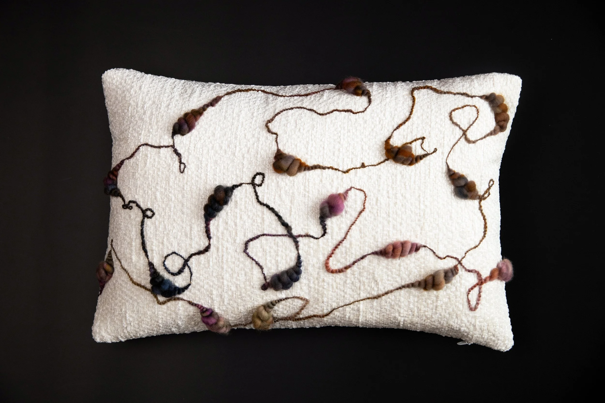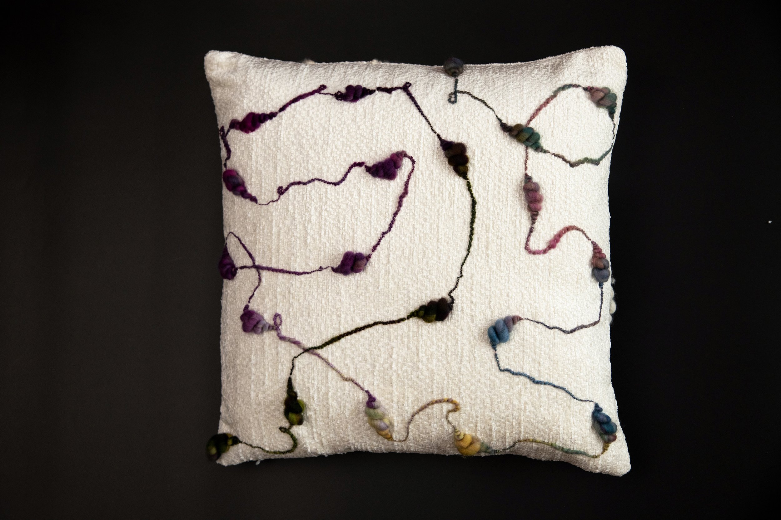 Here you can find a pillow that speaks to your journey, each one is a one-of-a-kind, handcrafted creation. If you are waiting for just the right design to speak to you, join the waitlist at the bottom of the page and we’ll notify you when new pillows find their way here.